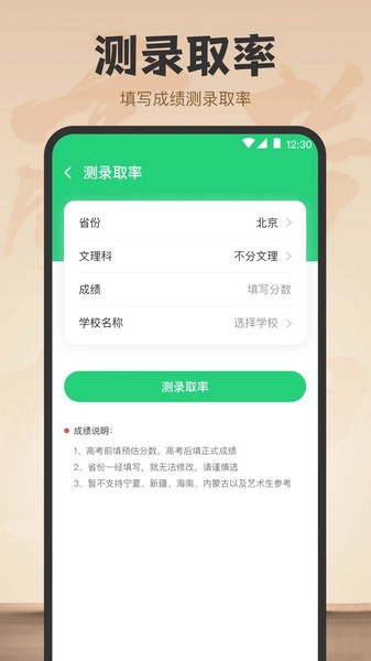 基于您的成绩,我们为您计算目标院校的录取几率,让您心里更有底。