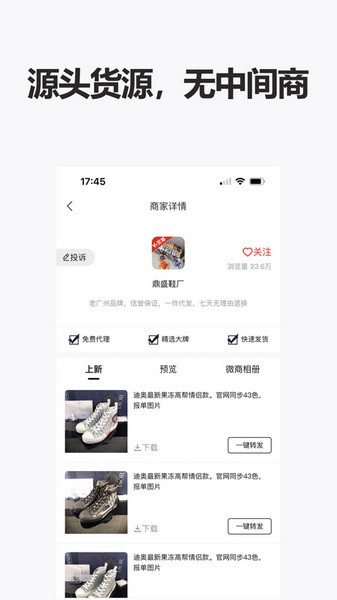 人人货源,为供货商户与找货用户提供便捷服务平台,实现商家多渠道分销,用户拿货有保障,拿货远低市场价