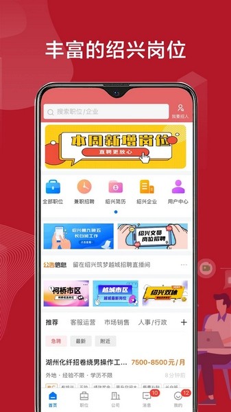 2、集合绍兴及周边城市的海量招聘信息,涵盖信息技术、机械制造、教育、金融、服务业等多个行业领域。