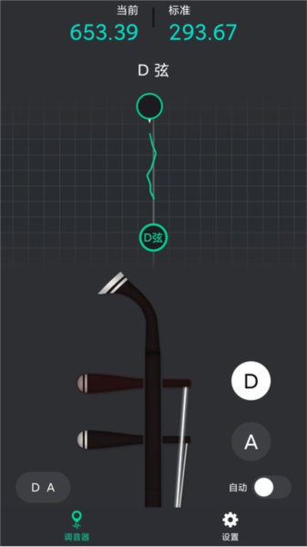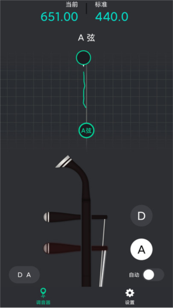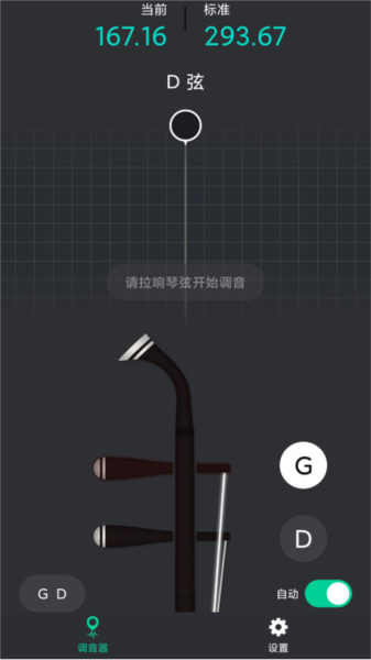 2、使用时,将手机靠近二胡,依次拉各个弦来测各弦音。