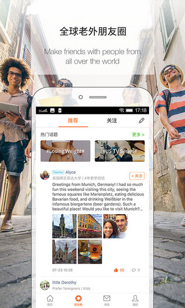 2、雅思考官、美女空姐、明星私教、新东方老师应有尽有,还可以认识兴趣相投的小伙伴,语音私信,对话交流。训练发音技巧、学习最地道的英语表达、生活用语、商务职场英语,了解西方文化、国外学习生活。各种口语练习团,与小伙伴一起互相监督,共同提高。