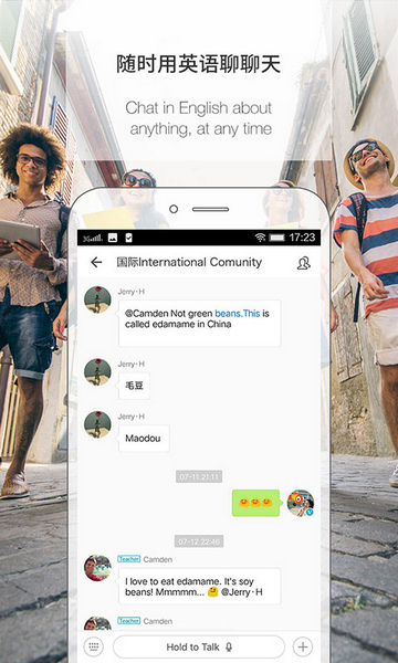 4、100%真人在线陪练,汇聚中外各国口语达人,实时语音在线交流,真实场景边学边用