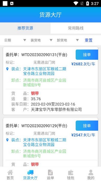 在资源大厅里面,就能找到自己想要的运输的东西,通过软件找到更好的订单去进行接取的。
