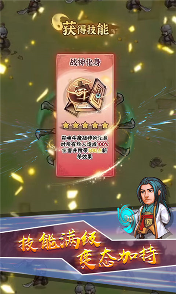 丰富多样的技能: 每次升级都能获得随机三选一技能,为玩家带来更多选择。