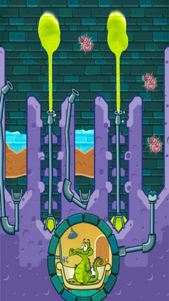 玩家需要将水源通过管道引到小顽皮的浴缸中才能获得游戏胜利。