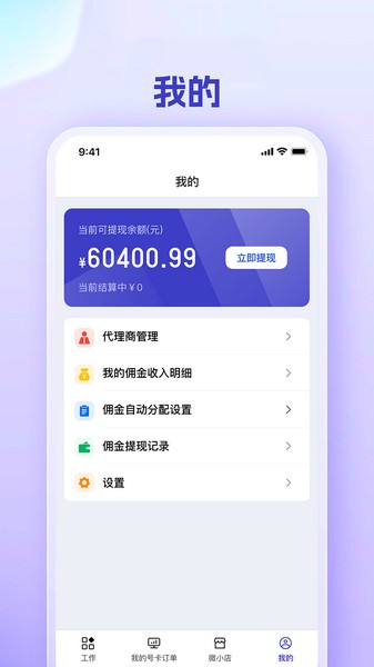卡博世号卡官方版app集成了多种功能,旨在为用户提供一站式的号卡业务管理服务。这款软件不仅方便用户随时随地管理自己的微小店和订单,还能轻松实现业务推广和佣金提现。用户可以通过搜索商品名称或运营商快速找到需要的商品,支持直接将产品分享到朋友圈,从而扩大产品影响力。所有销售订单和佣金数据都会被自动记录和统计,用户可以随时查看自己的销售情况和收益,确保业务透明化。此外,卡博世号卡官方版还提供了代理商管理功能,帮助用户实时了解代理商的情况并及时提供支持。
