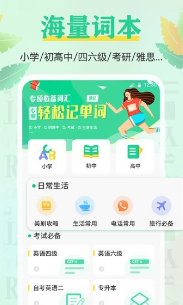 2、涵盖从低到高各阶段词汇,四六级考研,托福雅思GRE,各种主流考试一网打尽!