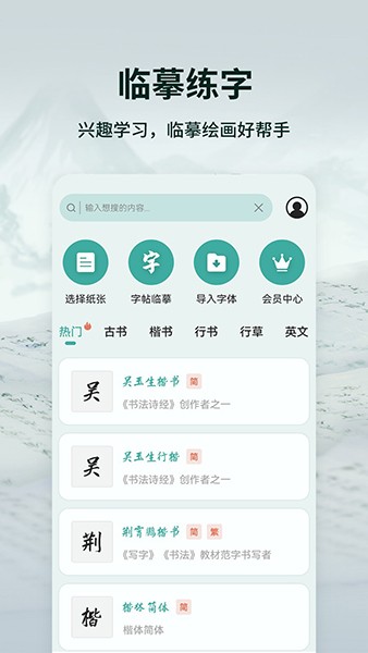 爱临摹提供了许多中常见的字体,可以让许多想要练习书法的用户都能快速的在这里练习书法;