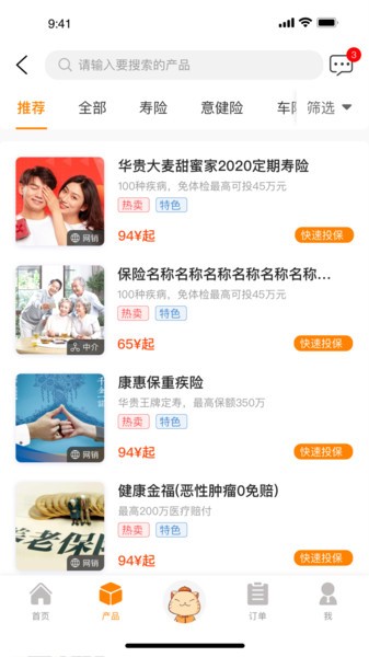 1、为用户提供快速投保功能,让用户更加快速的为自己的客户进行投保;