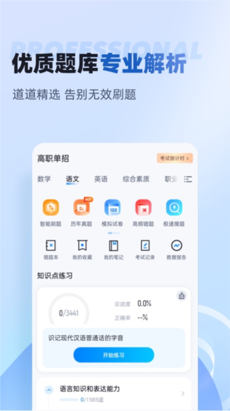 为职教高考提供一站式的备考服务,让用户可以通过软件一站式备战高考。