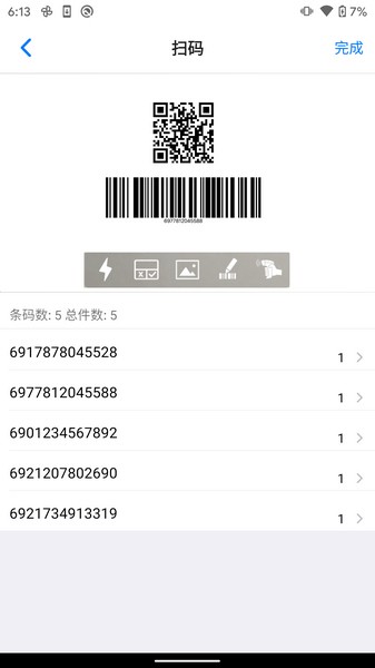 4、提供了扫一扫功能,便捷扫码并录入条码,当重复扫描时,自动语音提醒;