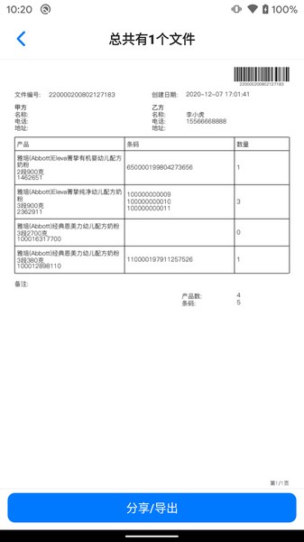 5、可以将订单条码导出为excel文件,还可以导出为pdf文件进行打印;