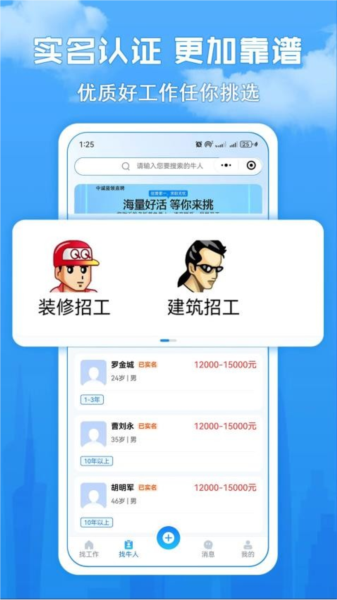 中诚蓝领直聘是一款专注建筑行业招聘求职找工作的信息发布平台,为您精准匹配招工与招聘信息,随时随地联系工人与老板,在线就能完成招工找活,工友轻松找到好工作,老板招工更加方便快捷。