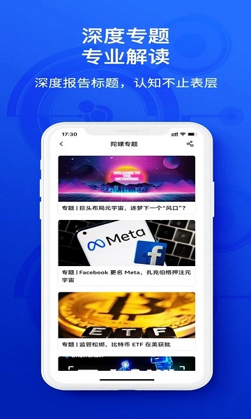 陀螺科技app原来的名字叫做陀螺财经,软件主要专注于财经类新闻资讯,其中包含了许多相关的财经新闻、陀螺问答、陀螺研究院等内容板块,并且软件内还有许多专业的专栏作家入驻,他们会为大家教授丰富的知识,并且还单独为大家设立了独有的陀螺区块链知识课堂讲解,让用户可以更清楚地读懂区块链和未来发展趋势,把握投资机会。