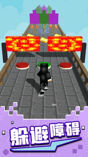 像素人跑酷是一款跑酷游戏,不过它的画面是很有特点的,有着和《我的世界》相同风格的角色造型和场景。这里的赛道也是很复杂的,由各种元素组合成的机关障碍,需要玩家快速发现解开的方法并通过。另外在路上也可以收集各种资源用来建造,比如金块、木材等等。此外游戏中还有很多角色皮肤可以解锁使用,可以随时切换使用。