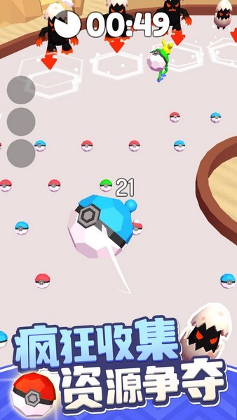 2.限时争夺优势,时限内尽可能收集更多精灵球,捕捉最强大的精灵,武装自己并阻止你的对手变强!