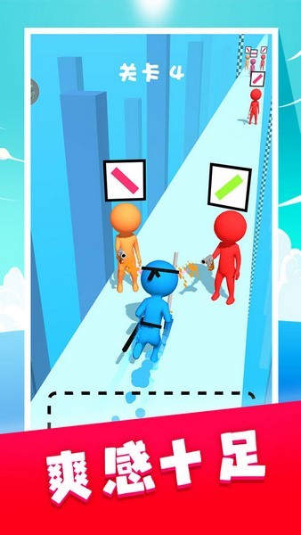 吃我一刀是一款闯关游戏,玩法操作都是很简单的,玩家可以在这里通过滑动屏幕的方式来触发攻击。每个敌人的头上都会显示一根线条,根据线条的方向来滑动即可攻击对应的敌人了,当然也要注意攻击的时机,要在敌人进入攻击范围了才可以。此外这里的敌人是很多的,而且难度会逐渐增加,到了后面玩家就需要快速地进行操作了。