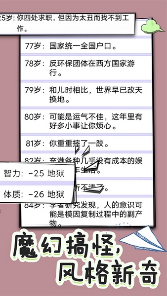 这款游戏真的很有趣!它让我感觉好像在玩一场人生大冒险,每次重新开始都会遇到不同的际遇。比如你可能会成为富二代,也可能是个平凡的普通人,完全随机的属性和选择让人觉得特别新鲜。