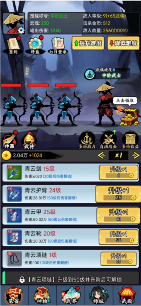 2、在变得更加尖锐和挑战强大的敌人之后,您将继续了解无与伦比的剑术,您将成为一名刚起步的剑客,并踏上追逐武术高峰的道路。