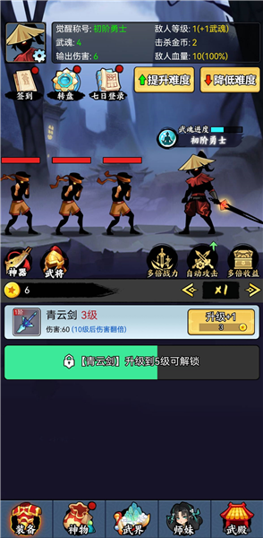 3、执行武术的本质,不断提高您的内心,对剑进行调整,不怕危险,挑战强大的敌人。