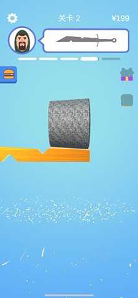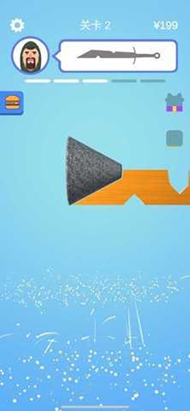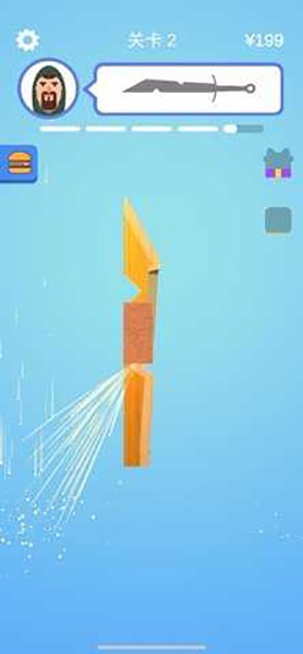 在做完打磨和开刃工作后,玩家可通过木块、可乐、机器人等物品,测试刀剑的锋利程度。这一游戏过程将为玩家提供相应的游戏奖励,即游戏金币。金币则可用来升级或解锁测试材料。