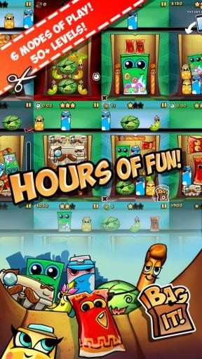 袋子大乱斗是一款非常好玩的益智游戏,在一个纸袋子中,你得把各种各样的东西合理安排放进去,比如罐装果汁、盒装牛奶、法式面包、西瓜以及各类副食。但是袋子的空间有限,要想放入太多的东西,必须得让它们挤一挤。和俄罗斯方块差不多的消除元素,但在游戏中则是表现为一物降一物,盒装牛奶能够压扁盒装果汁,西瓜是终极杀手压扁一切。