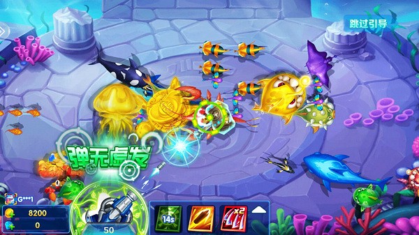 丰富玩法,章鱼BOSS,食人鱼BOSS,花样鱼阵变换,万倍BOSS来袭,多种休闲社交玩法。