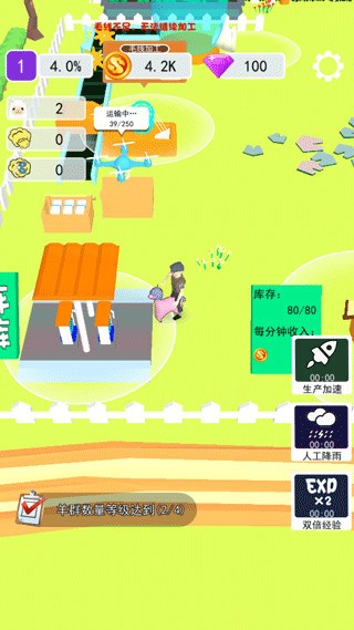 比较的简单玩法,让玩家就是进行着经营着自己牧场与羊毛工厂,各种的任务完成