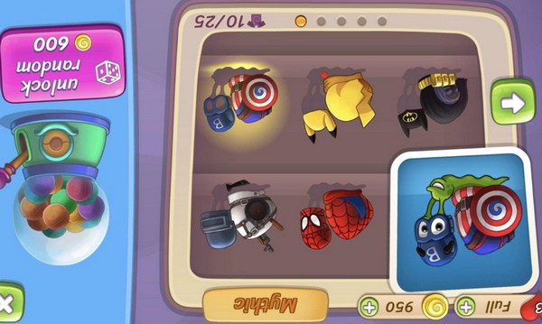4、为了缓解玩家们的视觉疲劳,蜗牛鲍勃3提供了各种服饰,通过闯关累积金币数量,并通过开启扭蛋机获得。