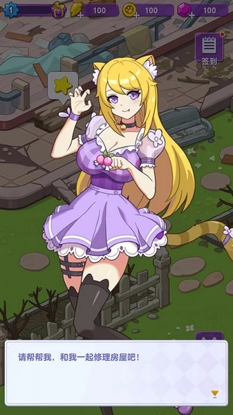 3、如图,获得了属于自己的猫咪,接下来我们可以和它一起修理房屋了,