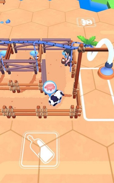 1、滑动屏幕,控制角色牧牛,让奶牛吃草和产奶,提高效益;