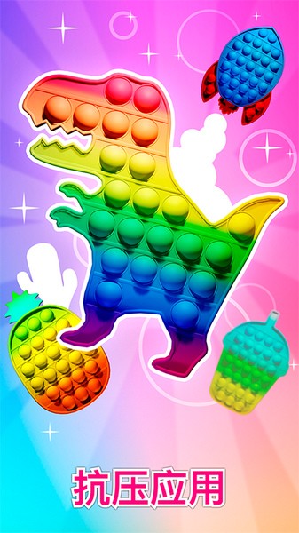 Pop It解压玩具游戏提供了丰富的DIY选项,玩家可以亲手制作各种形状的减压玩具,如彩虹独角兽、仙人掌、火箭、恐龙等,不仅造型各异,还能根据自己的心情和喜好随意选择。游戏的界面设计简洁明快,纯色背景让人眼前一亮,非常适合需要暂时逃离现实、放松心情的时刻。