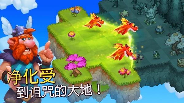 清除阿斯加德的咒语,击败卑鄙洛基的邪恶仆从!收集财宝,解决三消拼图,养育巨龙!连续合并蛋即可获得更强大的生物!