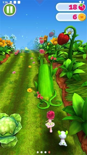 3、草莓女孩跑酷游戏的画面清新优雅,人物造型Q萌圆润,相比日韩系列的硬线条先比,显得更加可爱一些。