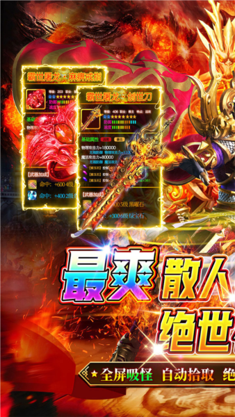 2、超强的力量爆发,勇敢出击对战,超高的游戏爆率,掉落更多的武器装备。