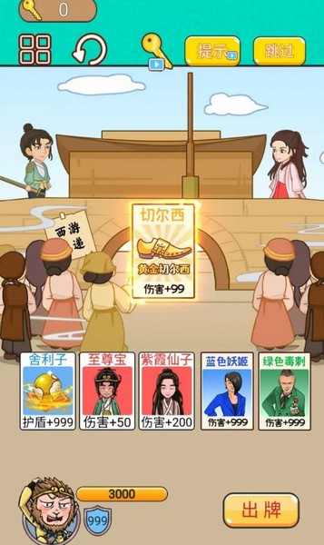 道具系统与卡牌升级:游戏提供多种道具供玩家使用,助力通关。玩家可不断升级卡牌角色,提升实力,在熟悉的西游世界中闯关冒险。