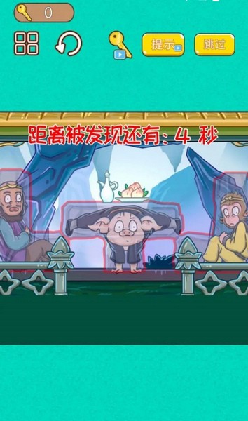 躲猫猫闯关玩法:游戏采用躲猫猫闯关玩法,玩家需协助师徒四人在妖怪巡逻中隐藏,调整角色姿势并利用场景物体躲避,玩法新颖有趣。