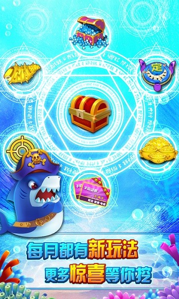 游戏亮点很多:高倍率爆机、真人联网对战、丰富的排行榜玩法,还有各种有趣的BOSS挑战,比如龟相迎宾、蟹将叛逃等任务模式。特别喜欢的是幽灵船长和人鱼宝藏这些特色玩法,不仅有酷炫的海底场景,还能通过打鱼掉落花色兑换奖励,甚至能开船炸大鱼,简直太刺激了!