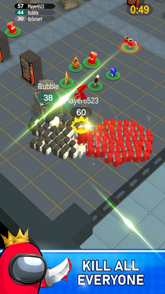 这款游戏叫《我们之中军团战争》,听起来就挺有意思的。玩过之后我发现确实超有趣!它主打太空狼人风格,你可以控制宇航员角色去攻击那些船员,感觉有点像是“打工人打老板”的既视感。游戏里有很多关卡可以解锁,每次通关还能获得新的道具和武器,这点特别棒。