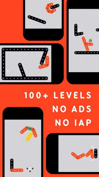 只要用这仅有的控制方式,使任何铰链或铁球停留在白色区域内三秒以上,你就可以愉快地进入下一关了。