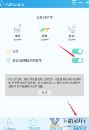 1、打开AiMouse语音软件,点击设备管理,把第三方应用麦克风权限按钮开关打开即可。