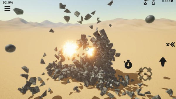 真实物理引擎与效果:游戏采用逼真物理引擎,呈现建筑崩塌、碎片飞溅等动态效果,玩家可通过慢动作模式调节时间速率,观察破坏细节,增强沉浸式体验。