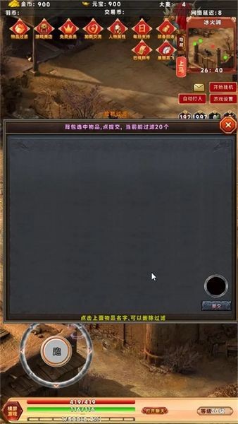 2、右下角四个魔瓶分别为回血,回蓝,随机传送和回城。