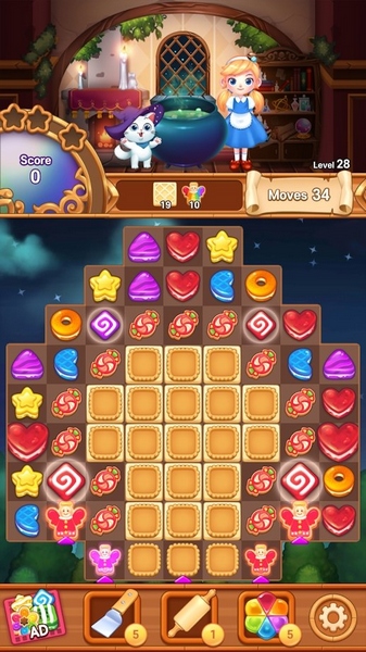 在这个神秘的世界中,爱丽丝和女巫魔法净化小甜饼地的冒险,让人充满了好奇和期待。呆萌的饼干外观增加了游戏的欢乐元素,每一次连消都如画面的震动一般,令人陶醉其中。