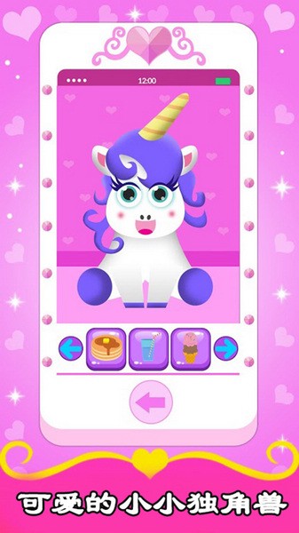 4、照顾好虚拟宠物(小独角兽),通过喂食,玩耍和拍照将其作为宝宝公主日常生活的一部分。