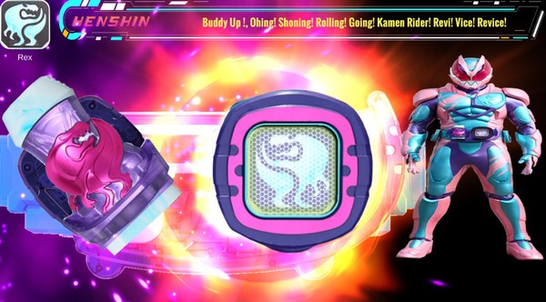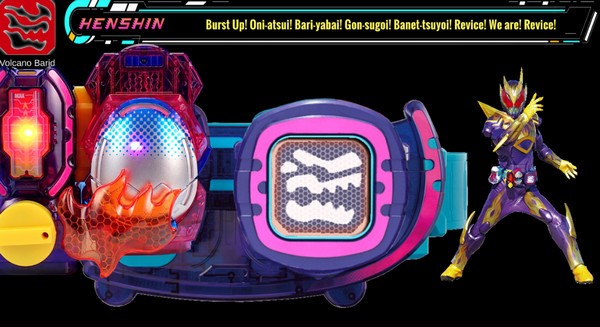 变身音效为“Buddyup!Ohing!Shortening!Rolling!Going!KamenRider!Rivi!Vice!Revice!”