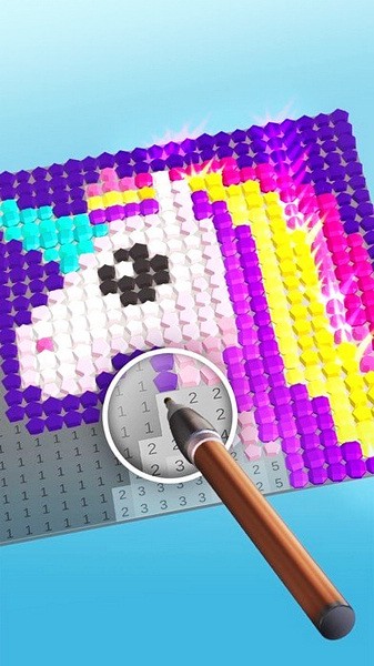 镶钻大师游戏最新版本是一款非常好玩的休闲类手游,游戏的玩法十分轻松,其中拥有许多不同的图案,大家的任务就是要将许多不同颜色的钻石正确的填充到图片中对应的数字里面,等到所有的数字被填充完整后大家就能获得一幅完整的画作。游戏的操作简单,没有任何难度,大家在游戏的过程中还能锻炼自己的专注力,适合不同年龄段的玩家。