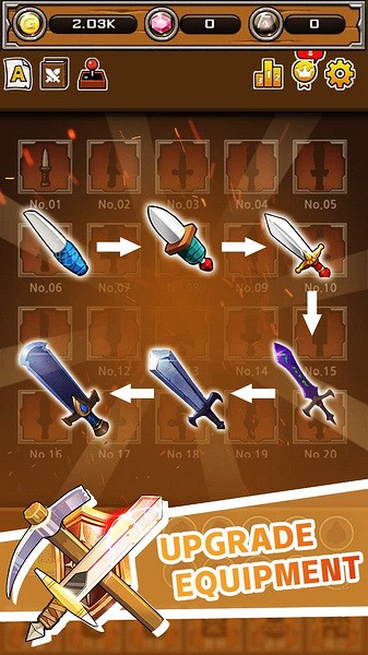 游戏特别棒的地方在于它的英雄系统和武器锻造机制。你可以招募、训练自己的英雄,看着他们一步步变强真的很满足。尤其是武器系统,每次打造出一把新武器都感觉战斗力飙升!关卡难度会慢慢增加,需要你不断优化装备才能过关,这种挑战感让人欲罢不能。