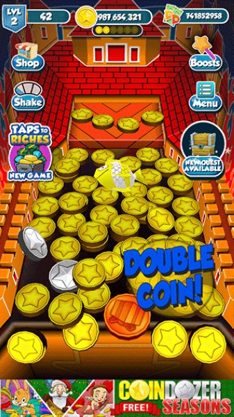 金币推土机手机版是一款十分有趣的卡通闯关游戏。在这款游戏中玩家可以挑战街机游戏店中的推币机,尝试在一次机会内推掉更多的金币。推币机内堆积了大量的金币,并且还会有随机的道具掉落在金币上,利用好道具来让自己获得更多的金币。金币推土机手机版玩家每一次挑战推币都需要支付一定的金币代价,活用各种技巧来赚取金币。
