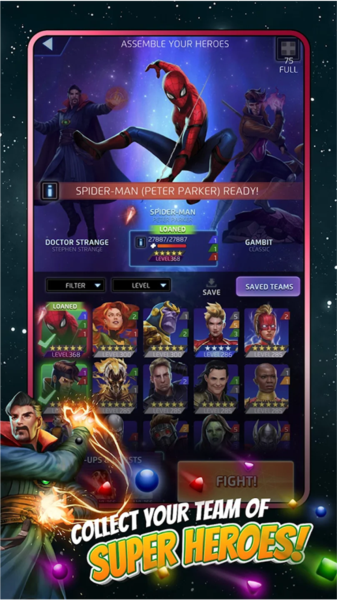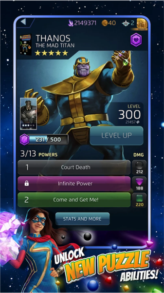 3.在消除的玩法基础上,游戏中设置了收集与养成玩法,让喜欢漫威的玩家在玩这款游戏得到非凡的体验。